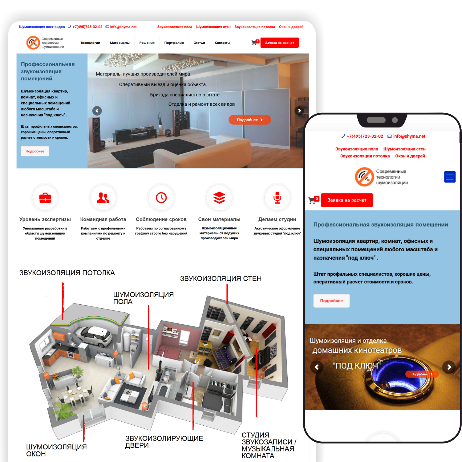 В данном сайте реализована схема устройства звукоизоляции с активными элементами.